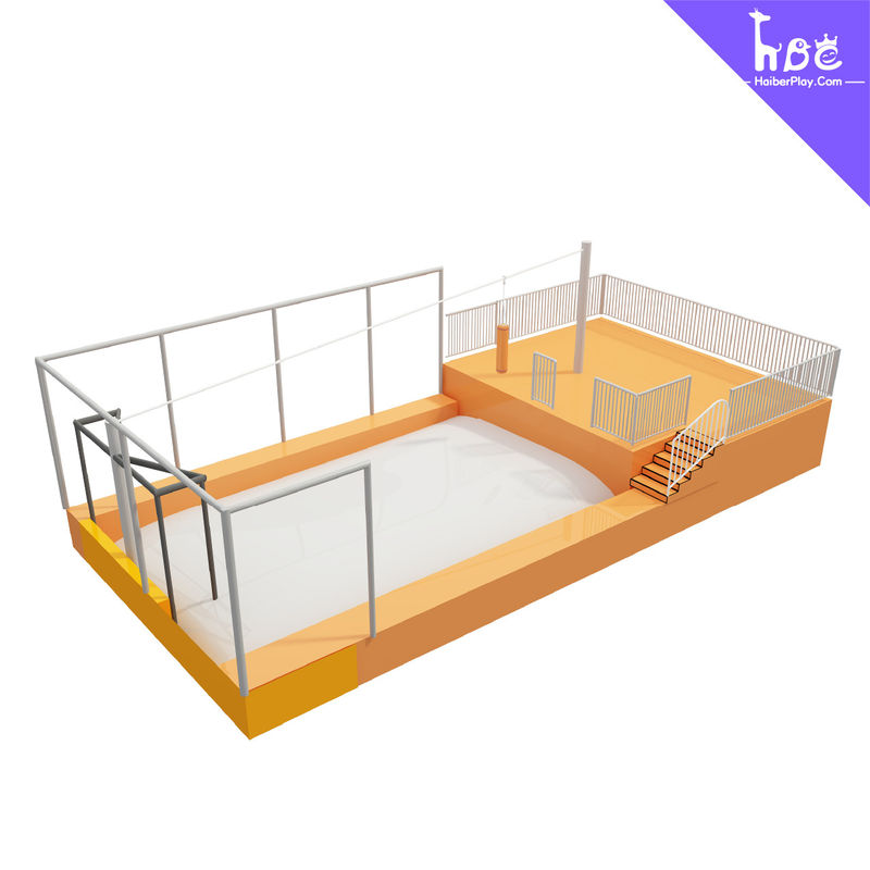 Designed with your branding, layout and space in mind the Haiber Play team produces a Main Court that enriches your trampoline park. This attraction is fully customizable with a variety of popular trampoline bed colors to choose from and collection of reactive color options available for your trampoline pads and bed stripes. It also offers a variety of sports in the trampoline park to enhance the playability and challenge of the park. These include the most popular basketball courts, dodge balls, and sponge pools or air mattresses.